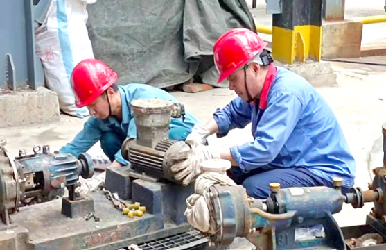 近期,随着聚酯新项目建设速度加快推进,设备安装工作提上了日程,为贯彻公司厉行节约的要求,项目部结合工艺需求,在原维纶分厂、有机分厂前系统拆卸下来的设备中找到了12台泵,经过专人检测,重新保养维护后即可使用。