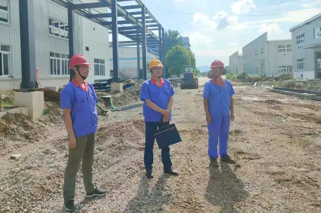 在花山公司二期项目建设现场,余明祥对实验楼的建成、二期仓库建好具备验收条件、包装生产线主设备安装就位等工作给予了充分肯定。对钢结构生产线安装进度提出了意见和建议。