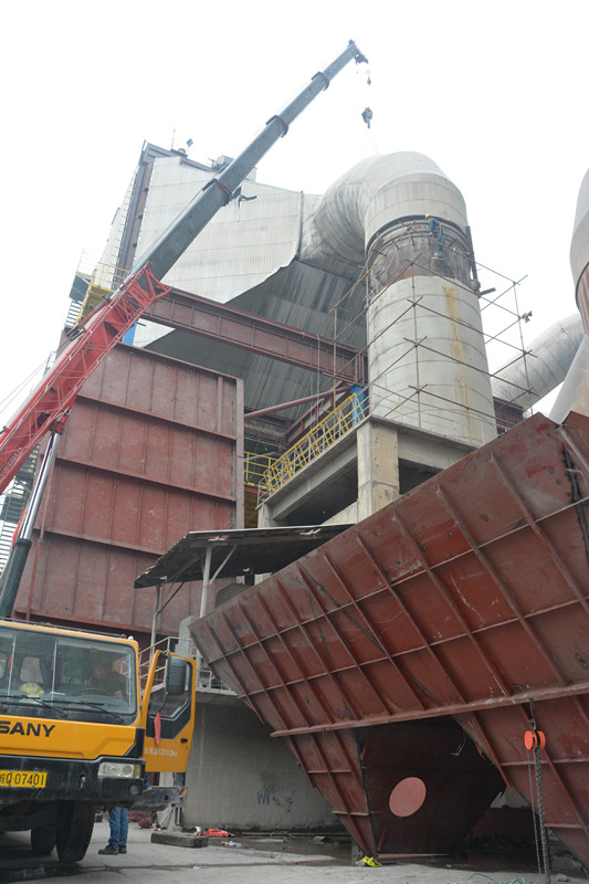 对全厂设备进行次检修保养。图为电收尘改造现场